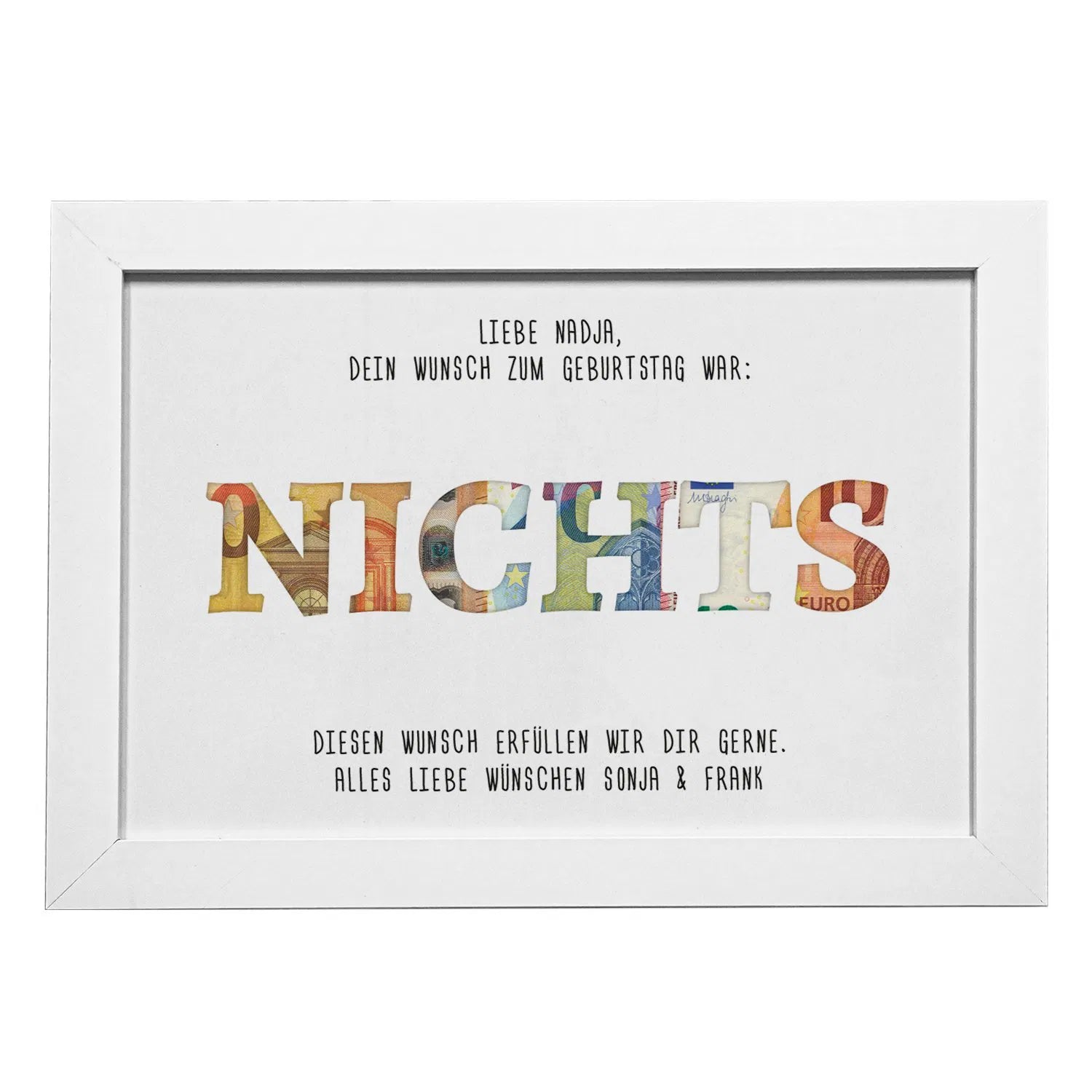 Stell dir vor, du überreichst einen Bilderrahmen – doch statt eines Fotos steckt darin eine Reisekarte zur „Traumreise“, ein Kreuzfahrt-Ticket oder einfach das Wort „Nichts“ als ironische Hommage an die Wahlfreiheit. Genau das macht unsere Rahmenkollektion aus! Sie verwandeln Bargeld in eine Geschichte, die zum Lachen, Träumen oder Planen einlädt. Ob für Hochzeiten, Geburtstage oder den Freund, der *wirklich* alles hat: Diese Geschenke sind wie ein persönlicher Wink mit dem Zaunpfahl. „Hier, investier’s in Sonnencreme!“ – Wer könnte da widerstehen?