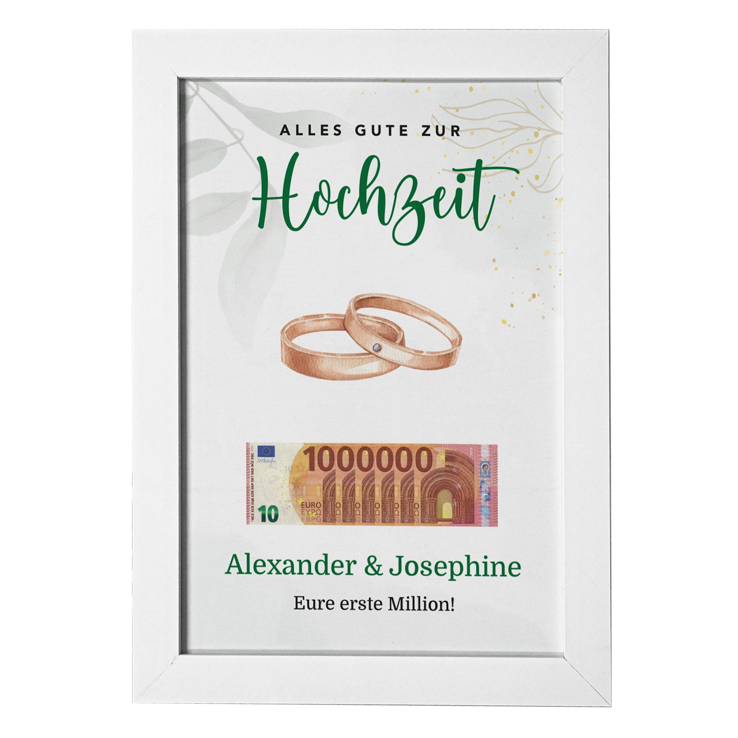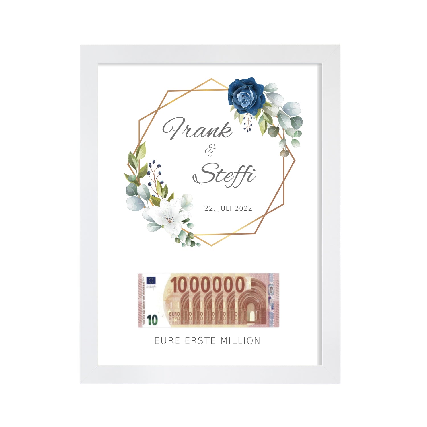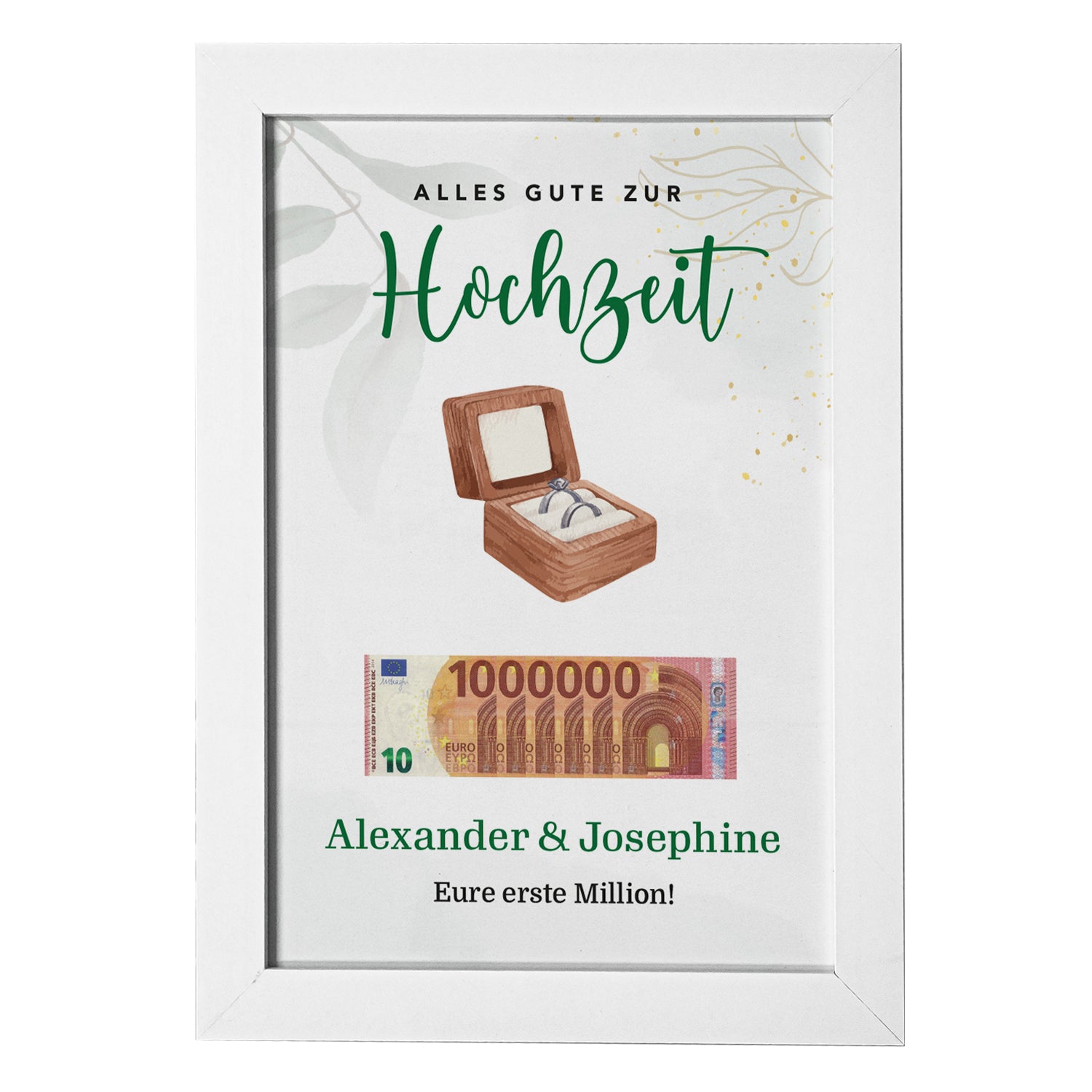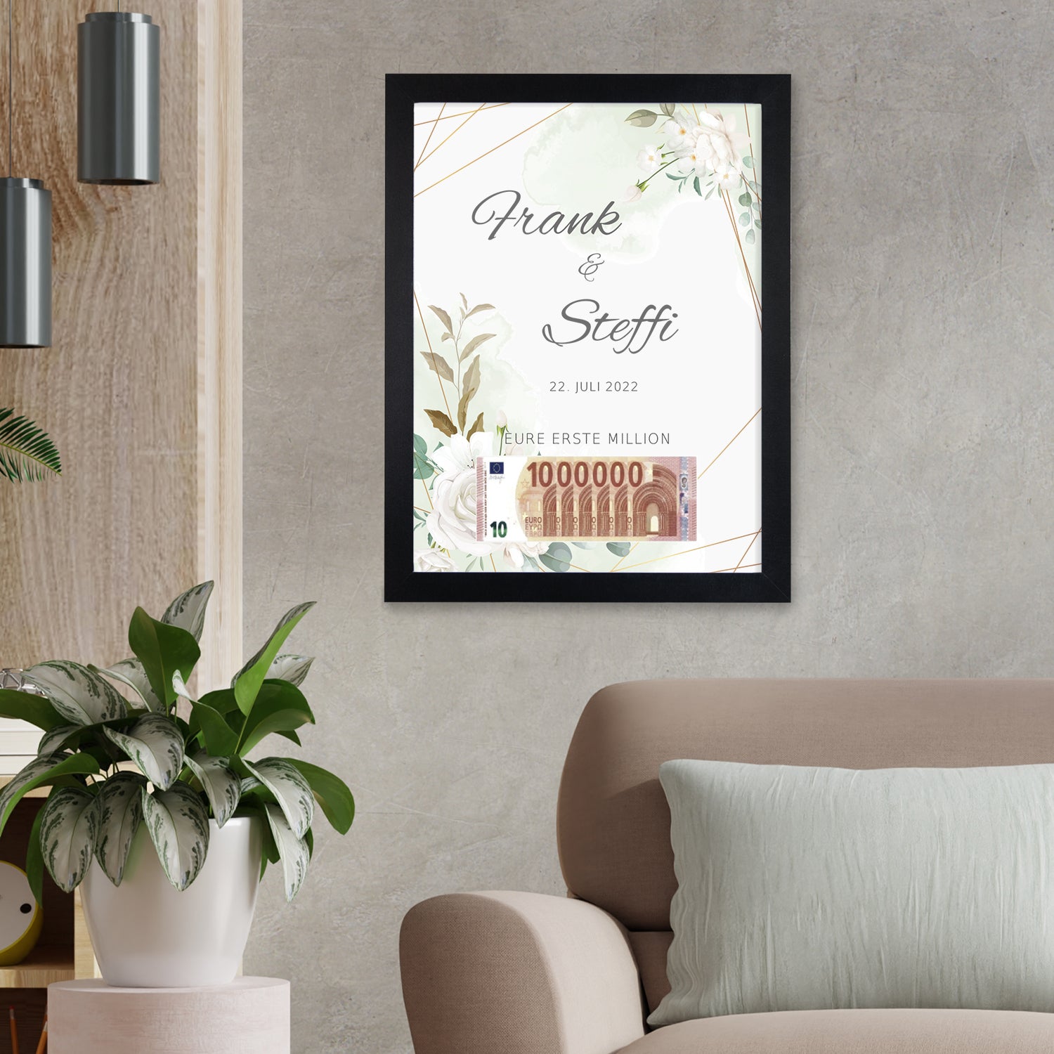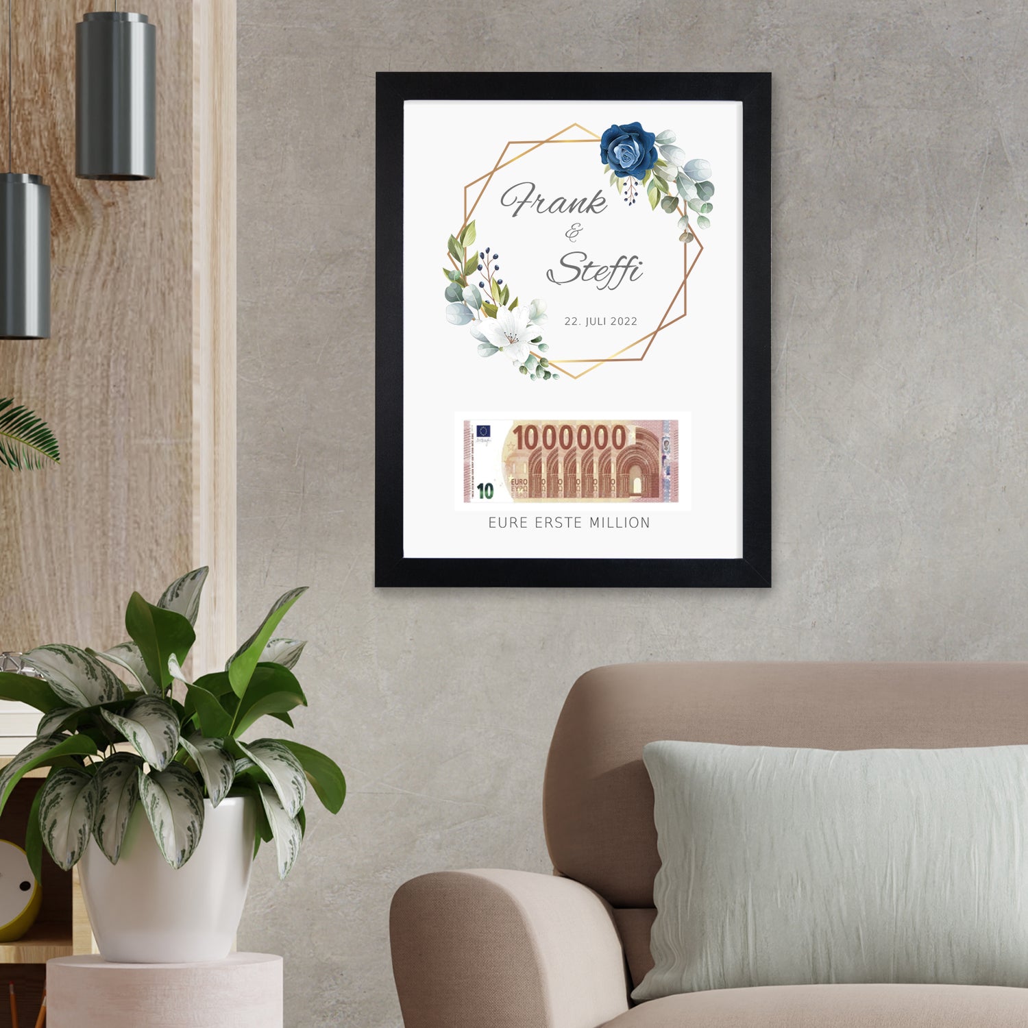 Wer träumt nicht davon, Millionär zu sein? Mit diesem originellen Wandbild verschenkst du zur Hochzeit oder zum Ehejubiläum symbolisch die erste Million – liebevoll, witzig und mit persönlicher Note.