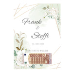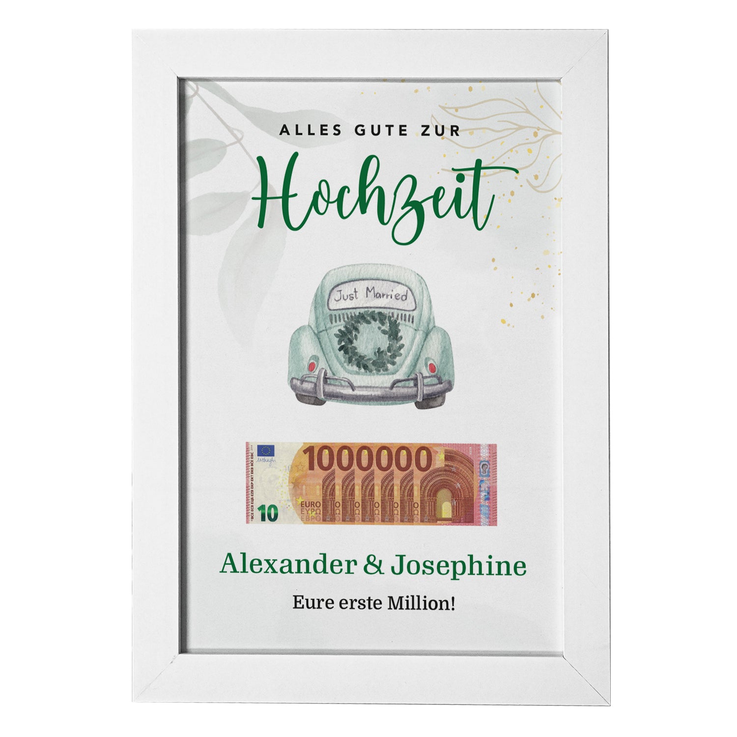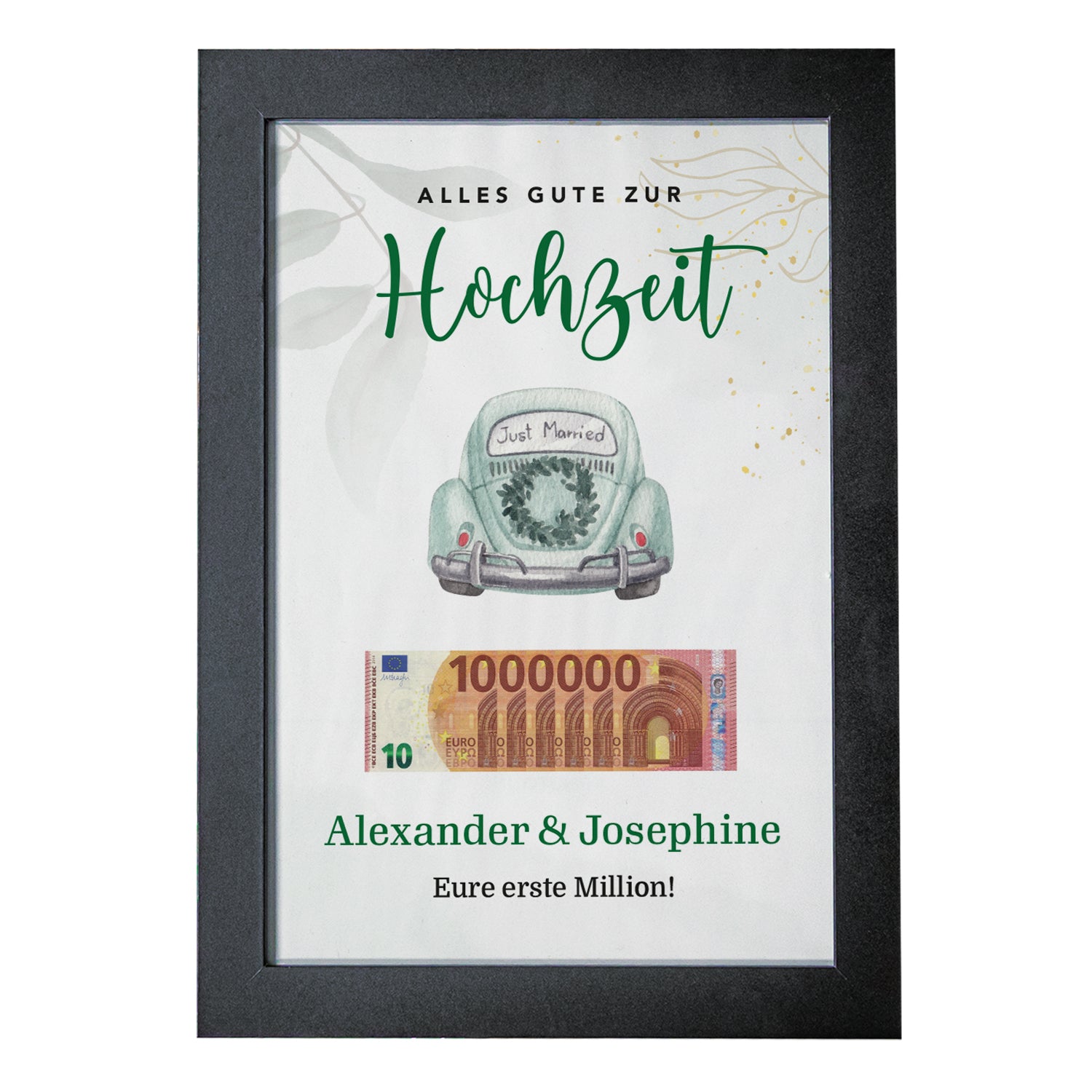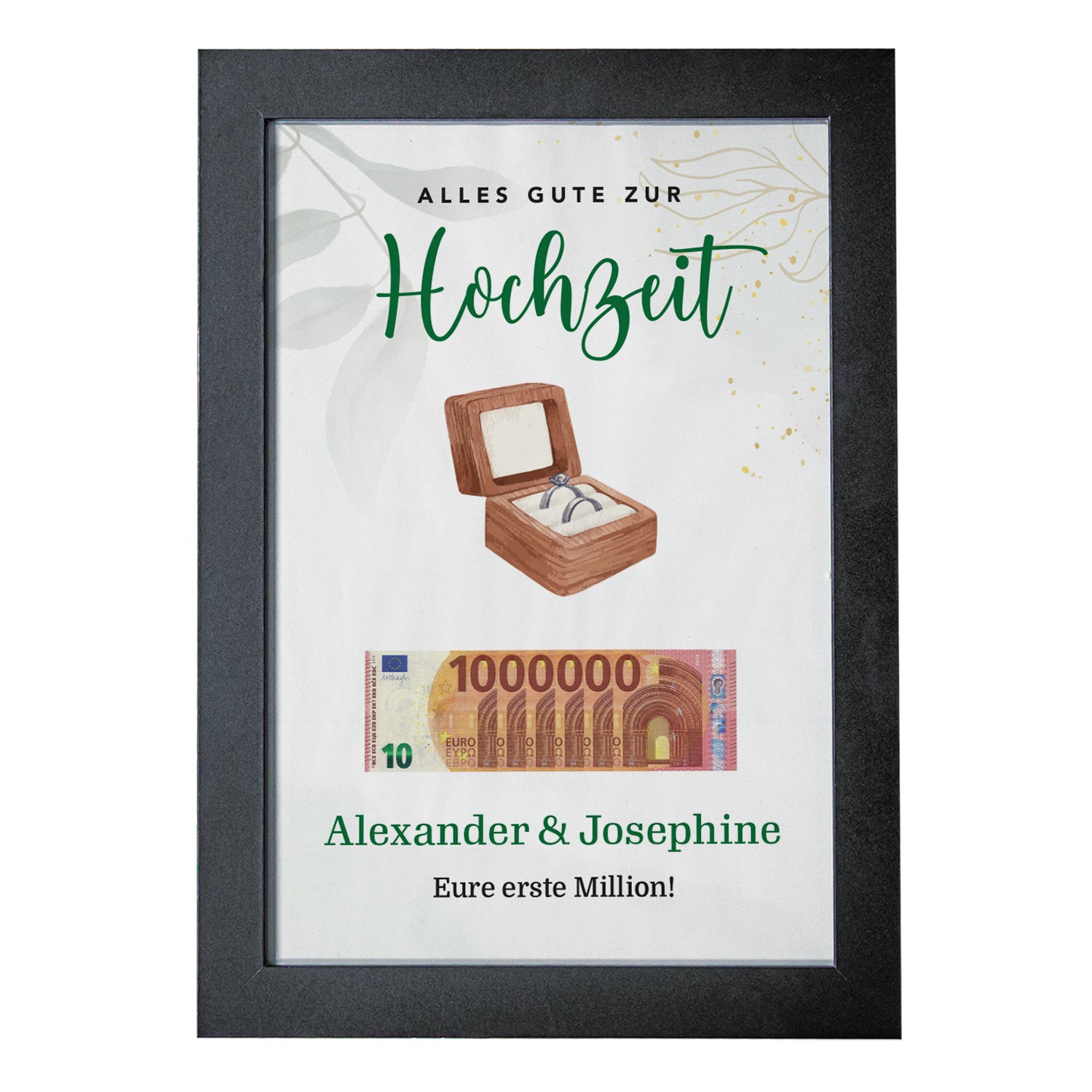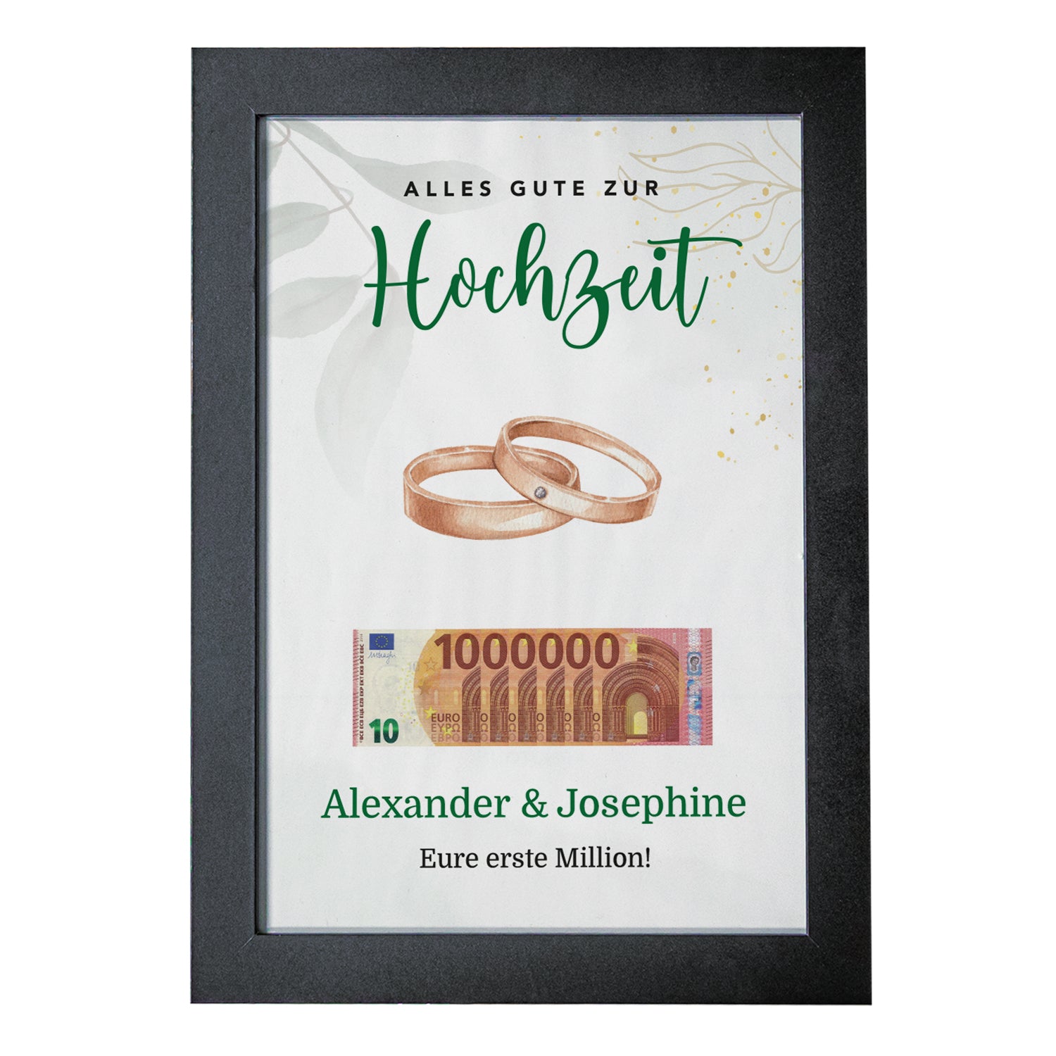 Wer träumt nicht davon, Millionär zu sein? Mit diesem originellen Wandbild verschenkst du zur Hochzeit oder zum Ehejubiläum symbolisch die erste Million – liebevoll, witzig und mit persönlicher Note.
